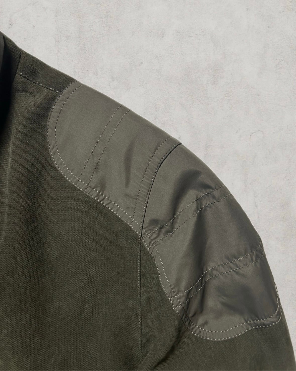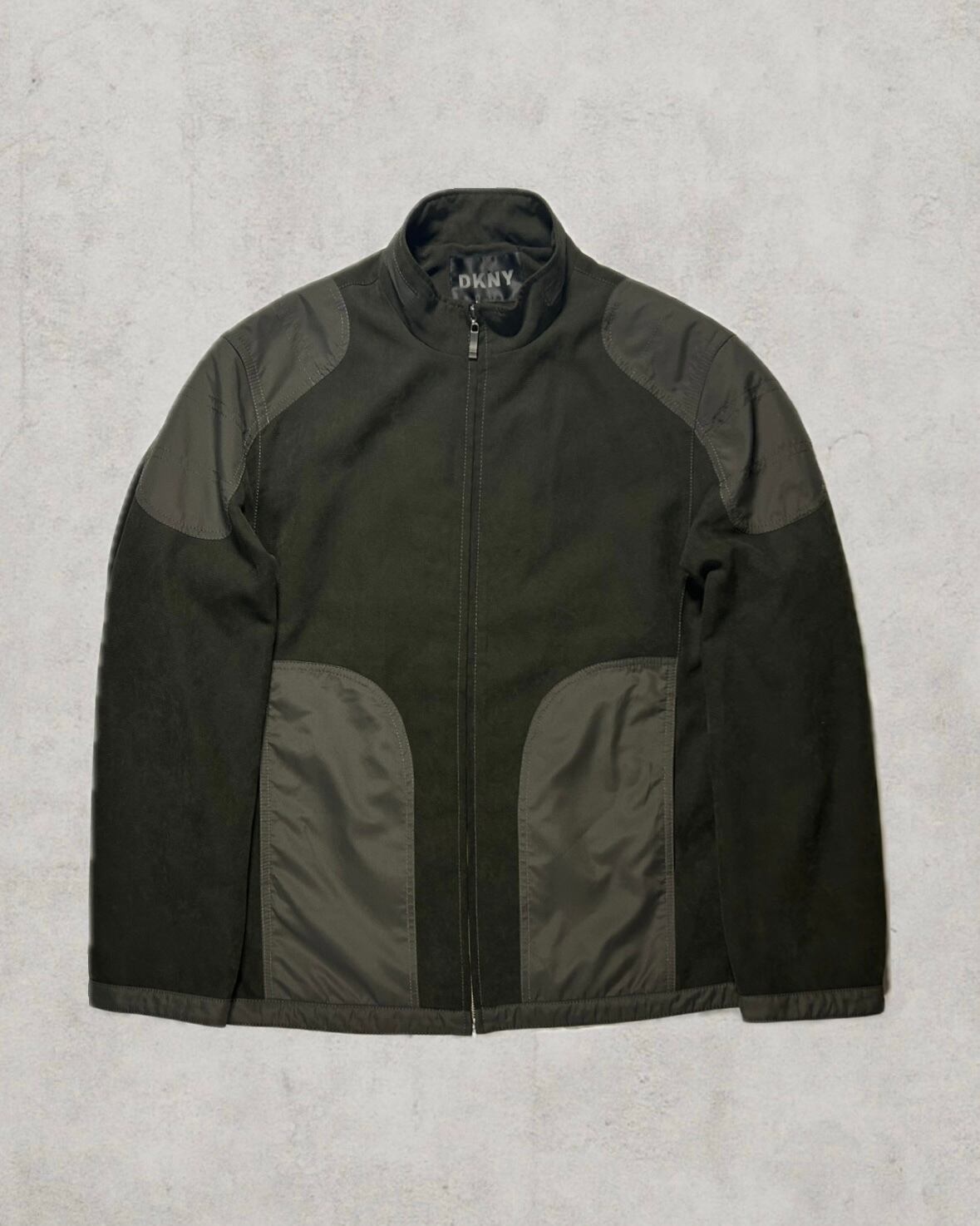 光沢感とハリのあるTeryleneを使用し、スポーツとモードを横断するようなテクニカルな雰囲気を持つ。シンプルながらも構築的なパネルデザインは、同時期のNYモードらしいエッセンスを感じさせる。