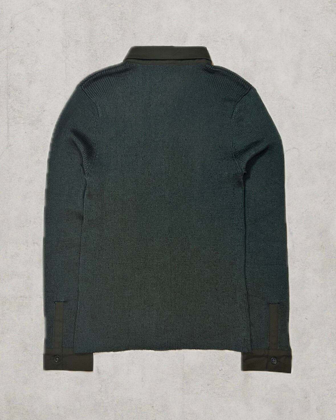 艶を帯びたリブニットにマットな布帛を切り替えた素材のコントラストが際立つ一着。リブ特有の伸縮性と、光沢が織りなす独特の存在感はスポーティさとモードなエッセンスを兼ね備える。