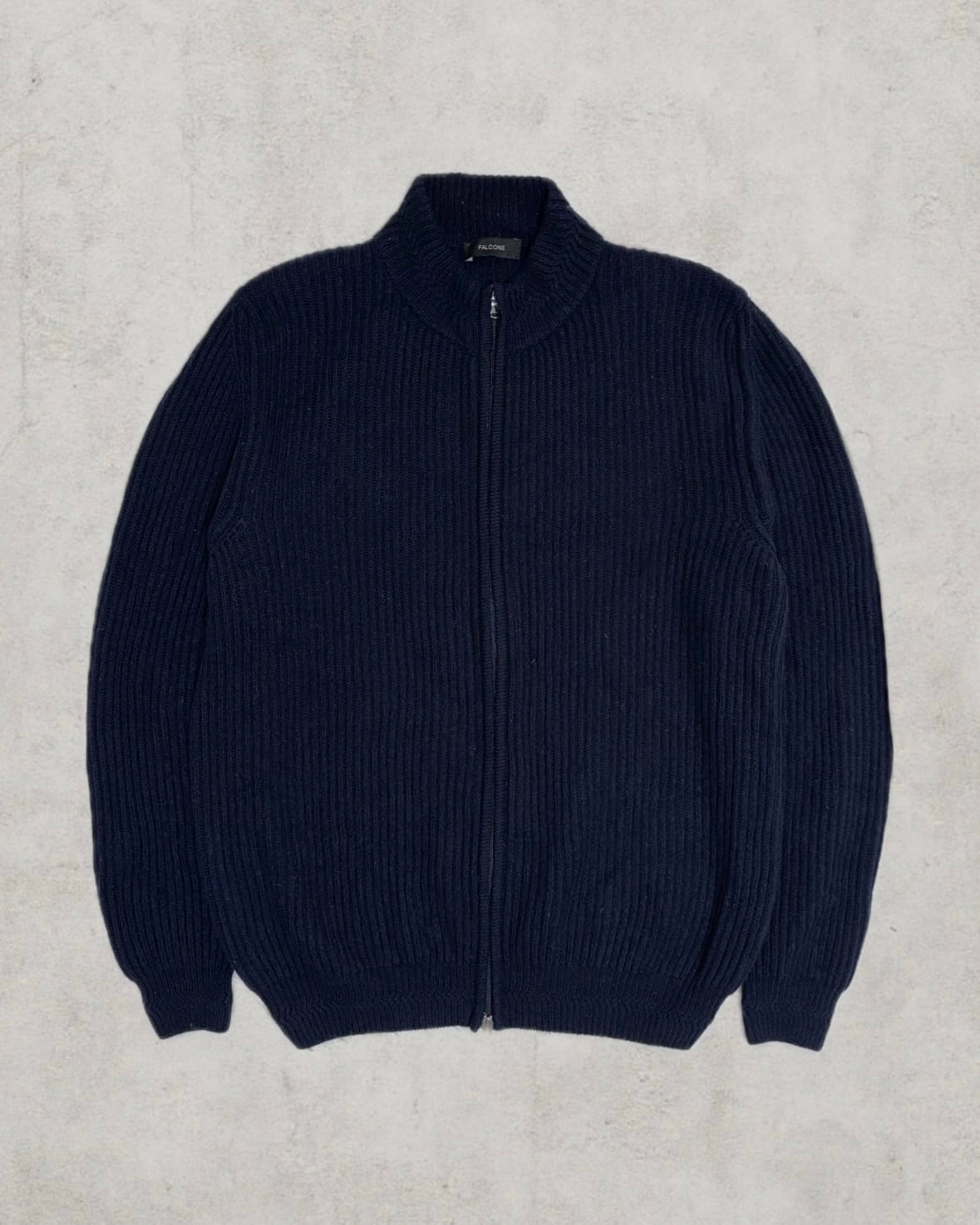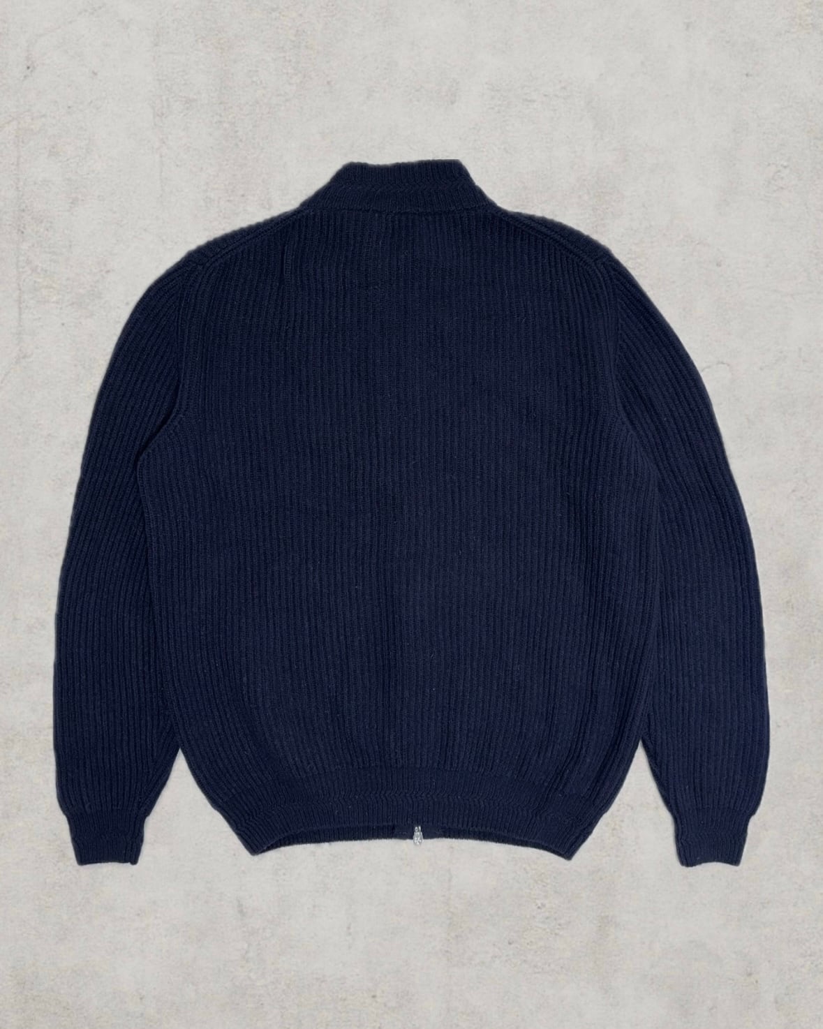 イタリア製の上質なLana Woolを編み込んだ逸品。深みのあるネイビーが落ち着いた印象を与え、無駄のない立体的なシルエットを際立てる。