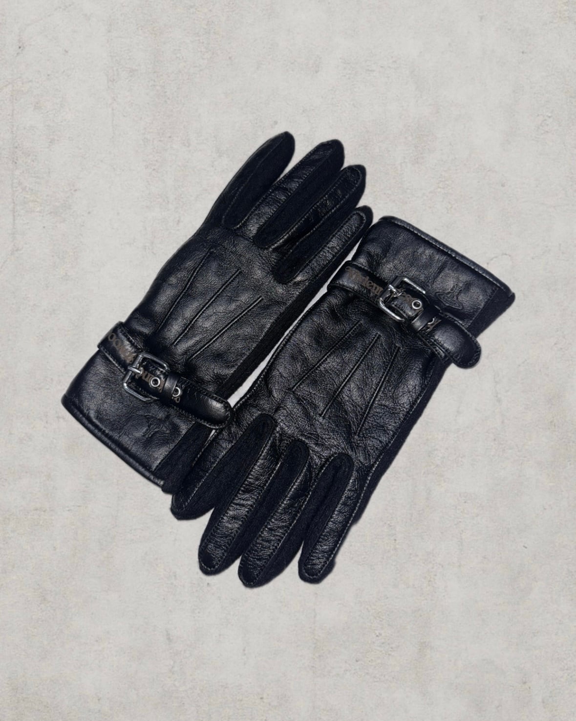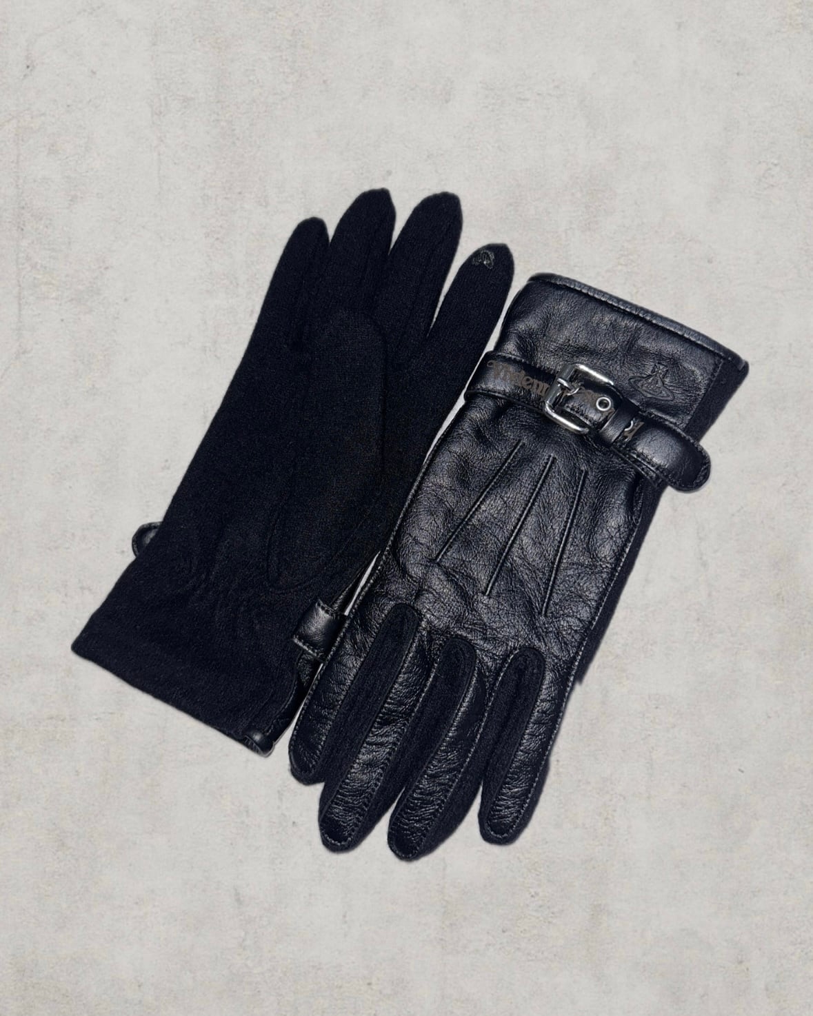 シボ感を残したレザー生地に、手首のバックルストラップをあしらったアイテム。上質な素材感やエッジの効いたデザインでVivienne Westwoodの世界観を凝縮したレザーグローブ。