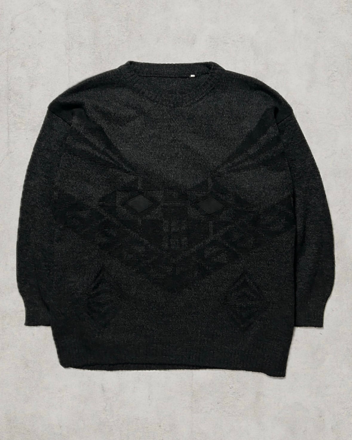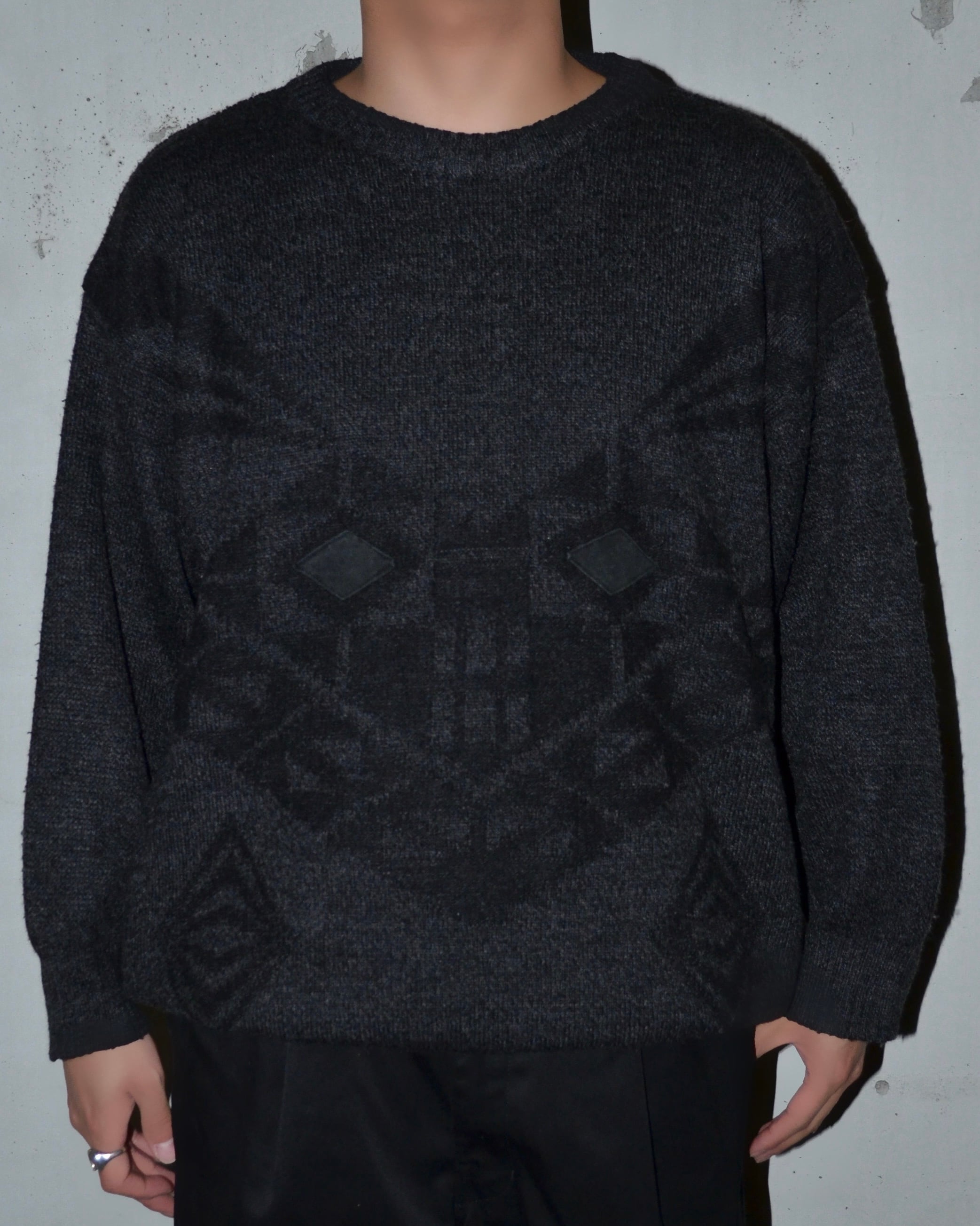 上質なウール素材に大胆な模様をあしらったイタリア製のニットプルオーバー。中心には繊細なパッチディテールが施され、ベーシックから外れた一着を求める玄人に刺さる一着。肩の落ちたシルエットでルーズな雰囲気も魅力。